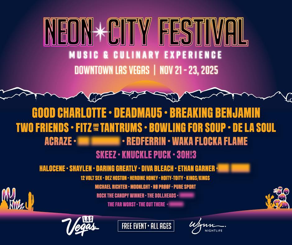 Neon City Festival organizers have revealed the lineup for the 2025 Neon City Music & Culinary Festival, set for Nov. 21-23 in Downtown Las Vegas.